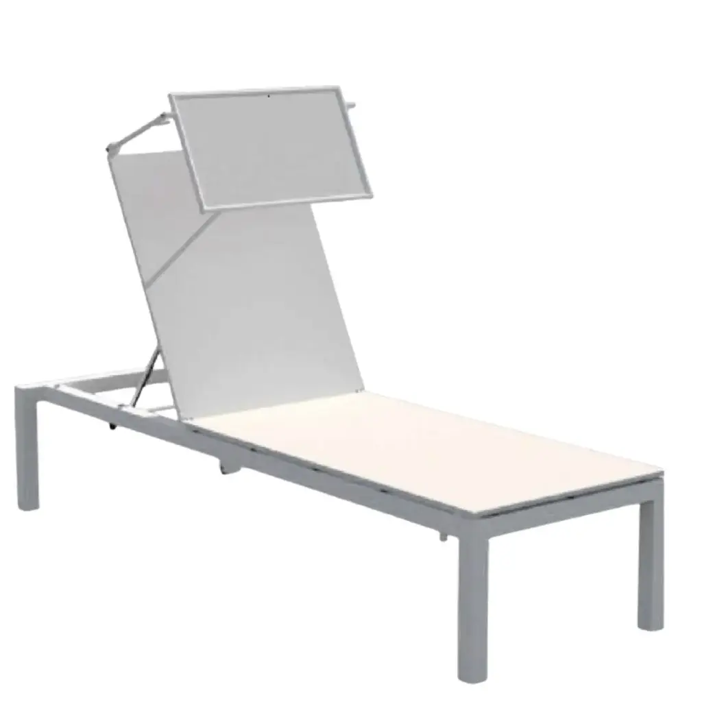 Robust Lounger With Shade Pebble Frame With White Pearl Grey Batyline
